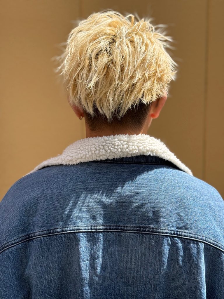 ハード系のワックスをつけた後にグリースで束をまとめる。